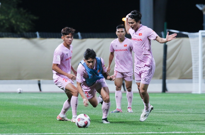 Sau 2 buổi tập thể lực trong phòng gym, các tuyển thủ Việt Nam thể hiện sự hứng khởi khi được hít thở bầu không khí ngoài trời trên sân tập. Thời tiết tại Qatar se lạnh tạo cảm giác thuận lợi cho các hoạt động tập luyện.