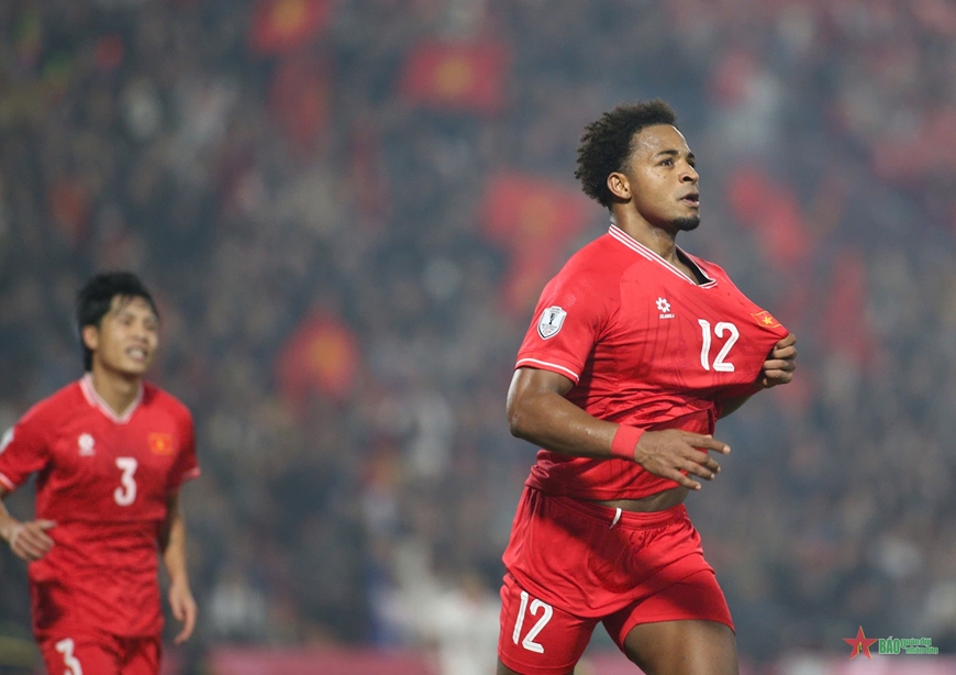 Xuân Son mừng bàn thắng của đội tuyển Việt Nam. Ảnh: VIỆT AN