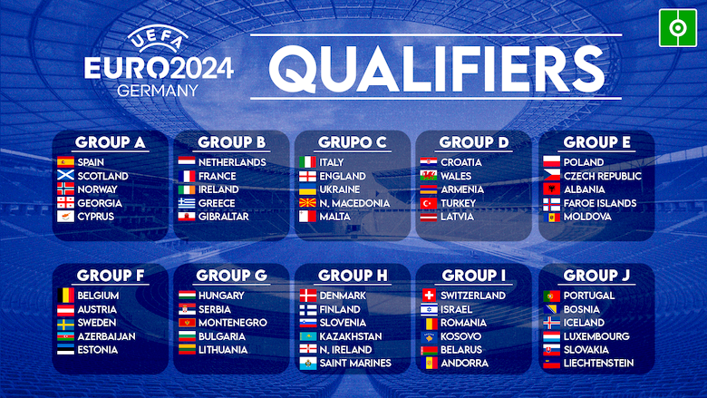 Kết quả bốc thăm chia bảng vòng loại Euro 2024. Nguồn: UEFA