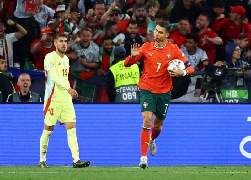 Trận đấu diễn ra với thế trận đôi công ngay từ những phút đầu tiên. Tây Ban Nha mở tỷ số ở phút 21 sau pha lập công cận thành của Zubimendi. Dẫu vậy, niềm vui của Tây Ban Nha không kéo dài lâu. Chỉ 5 phút sau, hậu vệ Nuno Mendes bất ngờ đột phá bên cánh trái và tung cú dứt điểm hiểm hóc gỡ hòa 1-1 cho Bồ Đào Nha.