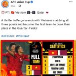 Đội tuyển U20 Việt Nam vừa có thắng lợi ấn tượng 2-1 trước U20 Qatar, qua đó vươn lên dẫn đầu bảng xếp hạng với 6 điểm. Kết quả này khiến U20 Qatar chính thức bị loại, trong khi đó U20 Iran và U20 Australia đều đang sở hữu 3 điểm.