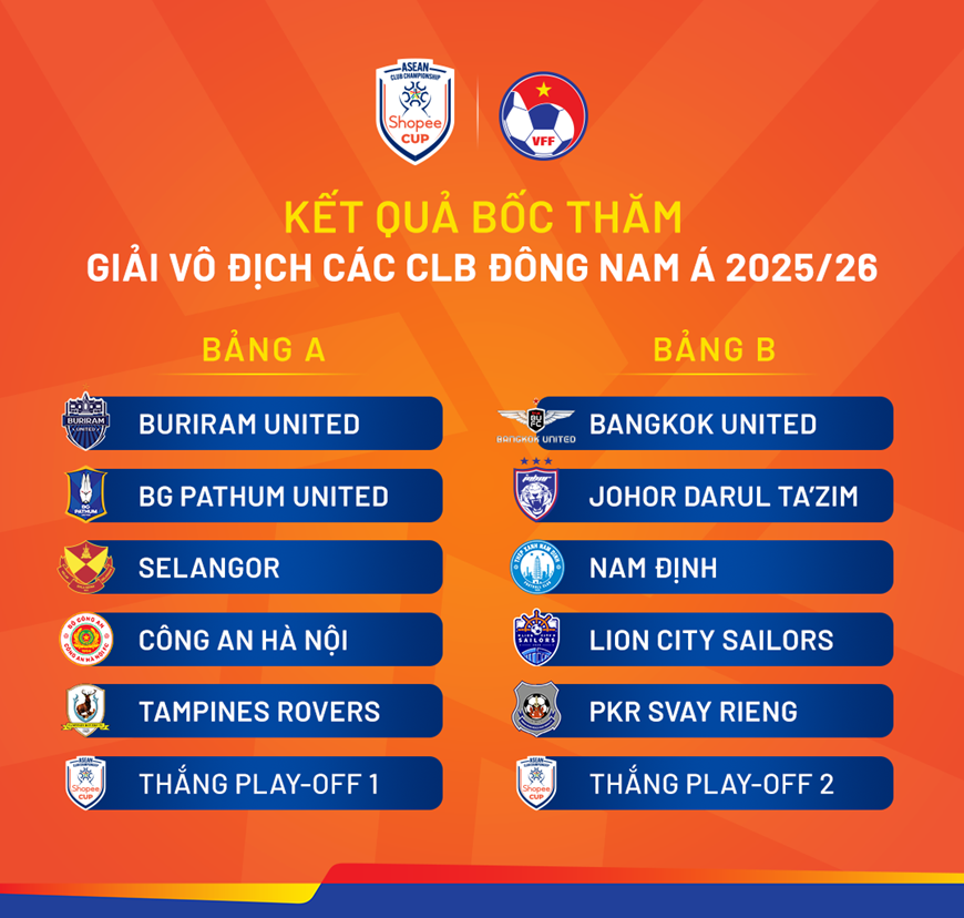 Giải vô địch các câu lạc bộ Đông Nam Á 2024-2025 đã hoàn tất vòng play-off và sẽ bước vào vòng bảng từ ngày 21-8. Đại diện của bóng đá Việt Nam tham gia giải là Công an Hà Nội FC và Đông Á Thanh Hóa.