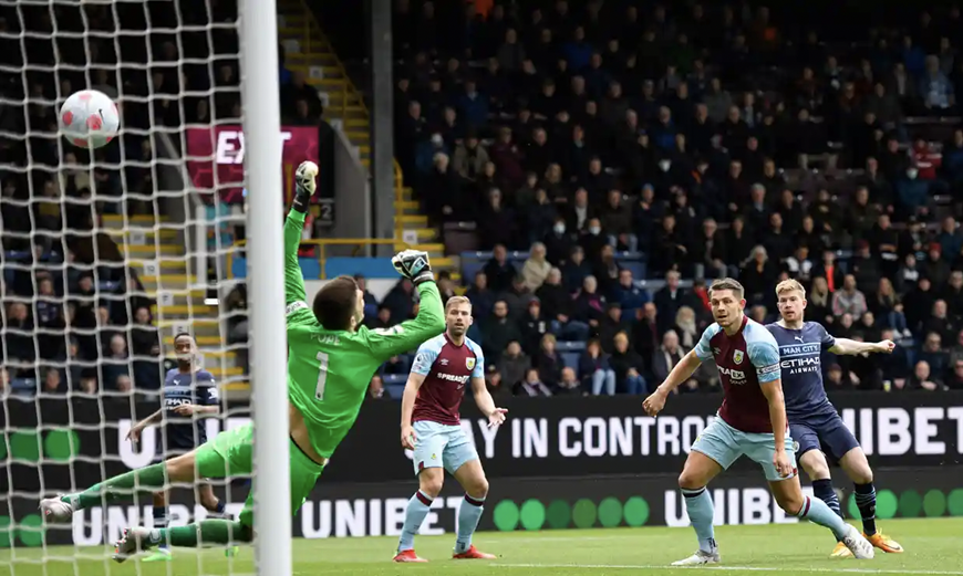 Kevin De Bruyne góp công 1 bàn thắng giúp Man City đánh bại Burnley 2-0 ở lượt trận đêm qua. Ảnh: The Guardian
