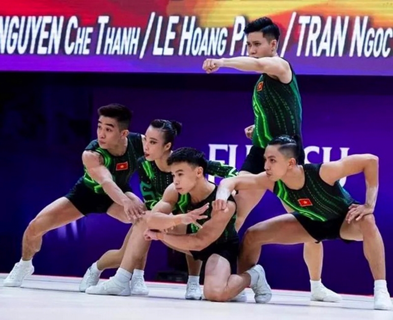 Đội tuyển aerobic Việt Nam gồm các vận động viên Nguyễn Chế Thanh, Lê Hoàng Phong, Trần Ngọc Thúy Vi, Nguyễn Việt Anh và Vương Hoài Ân vừa xuất sắc đạt 20.738 điểm, qua đó giành huy chương vàng nội dung nhóm biểu diễn 5 người tại Giải aerobic thế giới 2022, diễn ra tại Bồ Đào Nha.