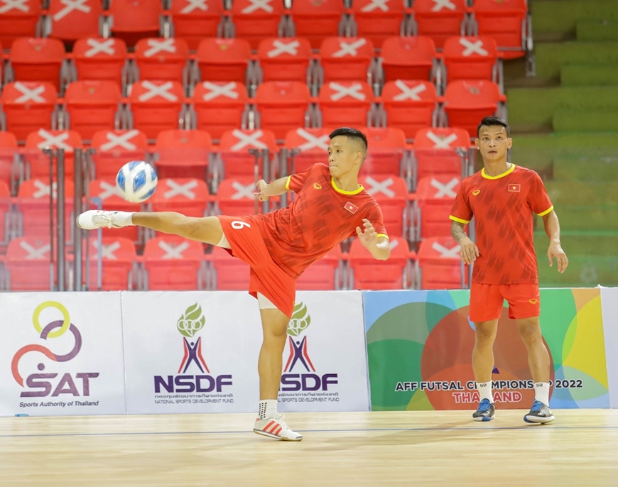Để chuẩn bị cho trận ra quân tại bảng B gặp Myanmar, diễn ra vào 11 giờ ngày 4-4, đội tuyển futsal Việt Nam đã có buổi tập làm quen sân thi đấu. Tại buổi tập này, huấn luyện viên Phạm Minh Giang tập trung cho các học trò ôn luyện các mảng đánh chiến thuật, hoàn thiện khả năng dứt điểm và tập luyện thêm tình huống sút phạt 10m.
