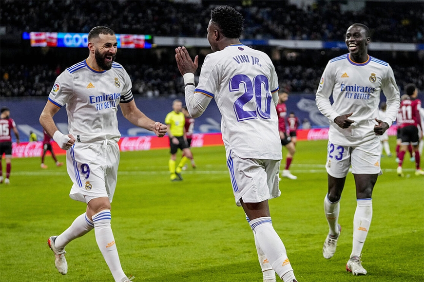 Benzema và Vinicius Jr đều lập cú đúp mang về chiến thắng cho Real Madrid. Ảnh: Marca.
