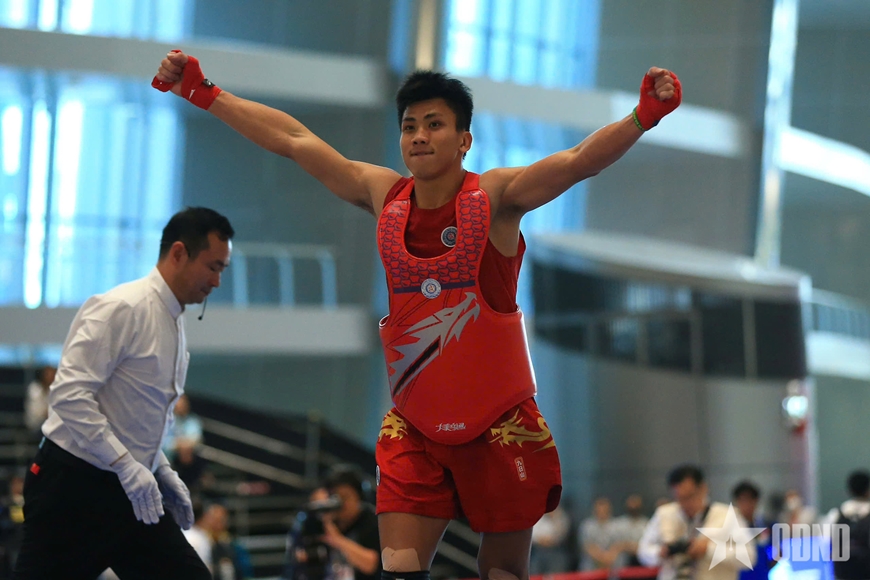 Tiếp đà thăng hoa, Trương Văn Chưởng giúp wushu Việt Nam hoàn thành chỉ tiêu, khi thắng võ sĩ người Lào 2-0 ở chung kết hạng 65kg nam.