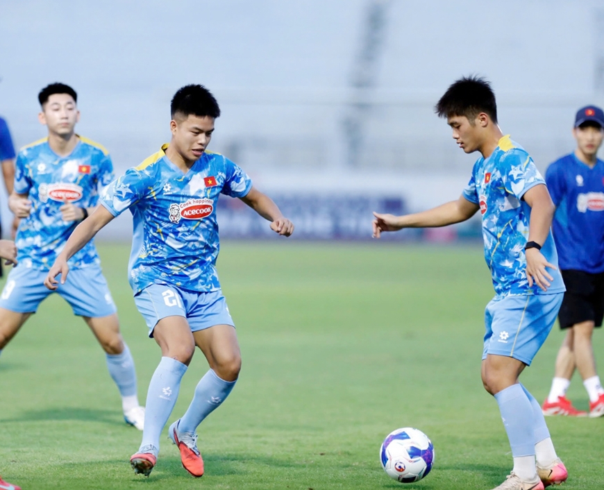 U.22 Việt Nam trong một buổi tập ở Vũng Tàu (TP Hồ Chí Minh) trước khi lên đường sang Thái Lan dự SEA Games 33. Ảnh: VFF