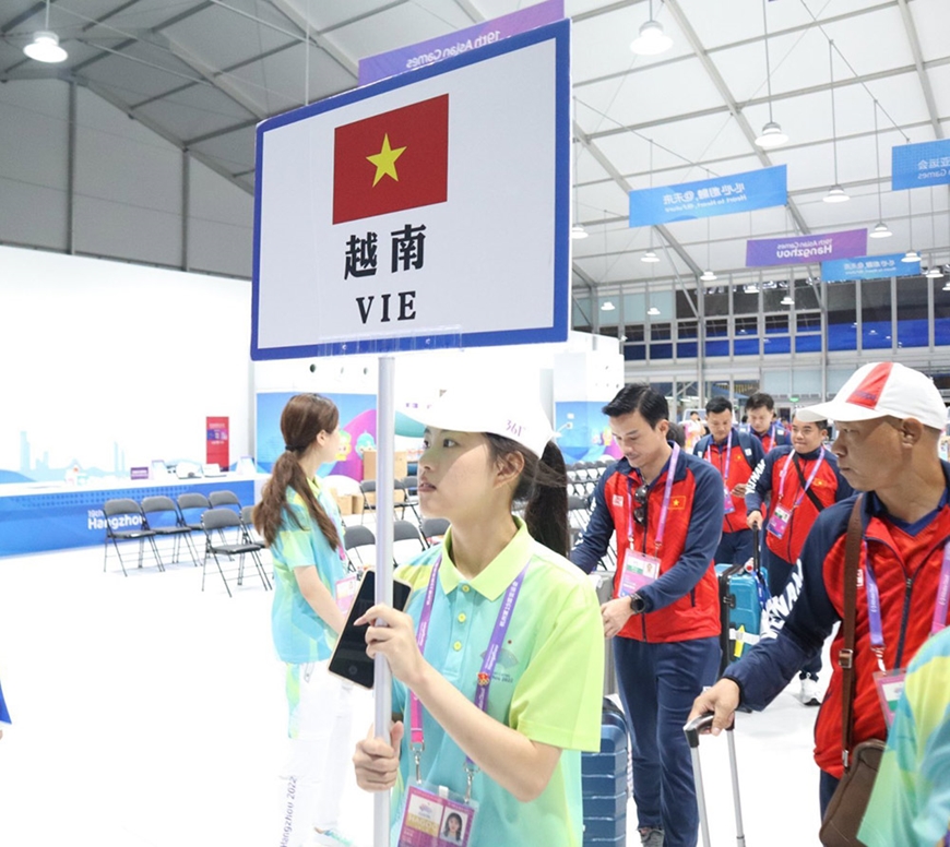 Tối 20-9, sau khi hạ cánh xuống sân bay Pudong, Thượng Hải (Trung Quốc), Đoàn Thể thao Việt Nam đã được nước chủ nhà đón tiếp chu đáo và sau đó nhập Làng Vận động viên Đại hội Thể thao châu Á lần thứ 19 (ASIAD) tại thành phố Hàng Châu.