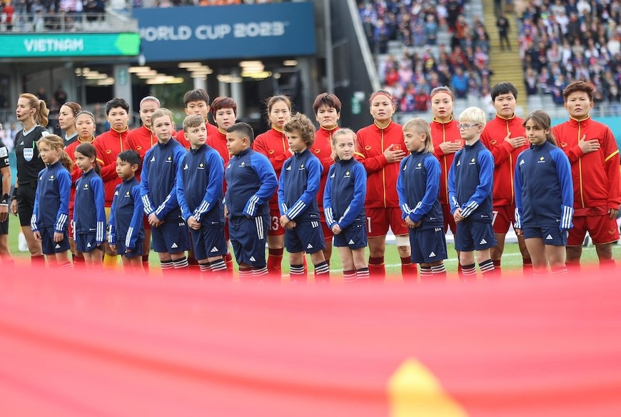 Quốc ca Việt Nam đã lần đầu tiên vang lên ở đấu trường World Cup. Ảnh: ĐỨC ĐỒNG