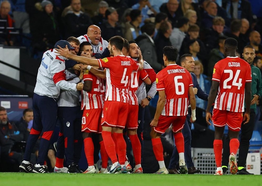 Crvena Zvezda bất ngờ mở tỷ số trước Man City ngay tại Etihad. Ảnh: Getty