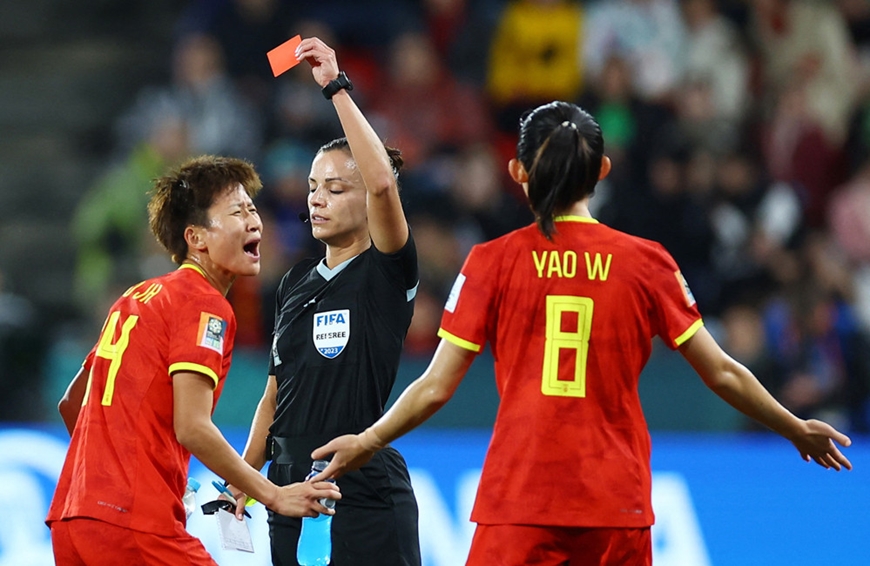 Đội tuyển nữ Trung Quốc phải chơi thiếu người từ phút 28. Ảnh: Reuters