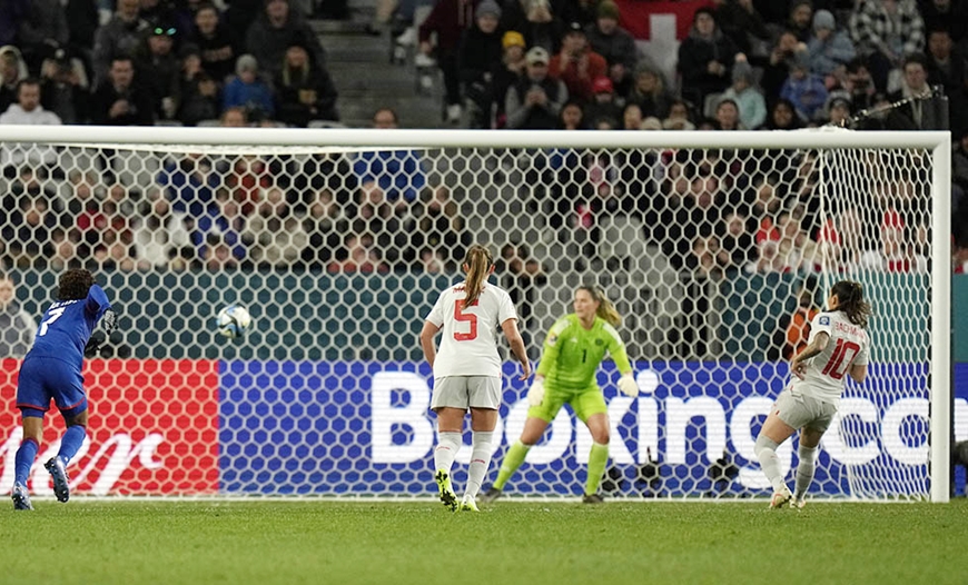 Ramona Bachmann (số 10) mở tỷ số cho Thụy Sĩ từ chấm 11m. Ảnh: ABC News