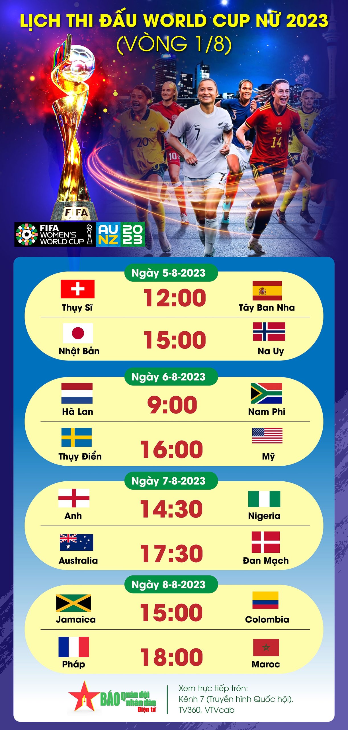Dưới đây là lịch thi đấu vòng loại trực tiếp World Cup nữ 2023 mới nhất: