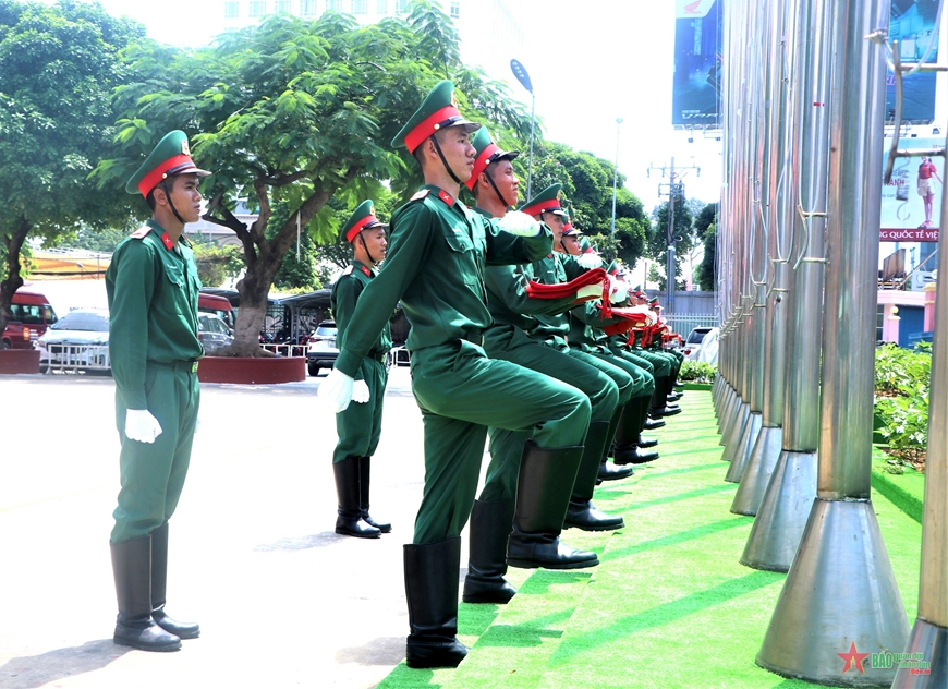 Lực lượng Nghi lễ luyện tập vào vị trí chuẩn bị thượng cờ.