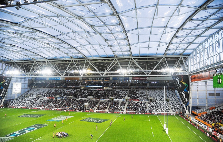 Sân Forsyth Barr đi vào hoạt động từ năm 2011, với sức chứa khoảng 30.000 người, còn được biết đến với nhiều tên gọi khác nhau như sân Dunedin hoặc sân Otago. Sân sử dụng mặt cỏ hỗn hợp (cỏ bằng sợi tổng hợp được cấy đan xen với cỏ tự nhiên).