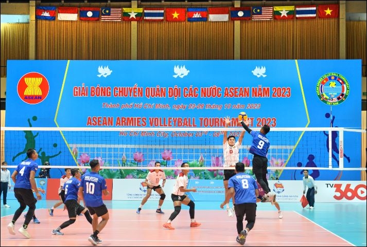 Giải bóng chuyền nam trong nhà Quân đội các nước ASEAN 2023: Tăng cường tình đoàn kết, hữu nghị giữa quân đội các nước ASEANTối nay (3-10), Giải bóng chuyền nam trong nhà Quân đội các nước ASEAN 2023 chính thức khai mạc tại Trung tâm Thể dục thể thao (TDTT) Quốc phòng II (Quân khu 7). Với tinh thần “Quân đội ASEAN hợp tác, gắn kết vì hòa bình”, giải đấu nhằm tăng cường sự đoàn kết, hiểu biết lẫn nhau giữa quân đội các nước ASEAN…Thượng cờ Giải bóng chuyền nam quân đội các nước ASEANSáng 1-10, tại Trung tâm Thể dục thể thao quốc phòng 2 (Quân khu 7) đã diễn ra lễ thượng cờ các nước tham dự Giải bóng chuyền nam quân đội các nước ASEAN năm 2023.