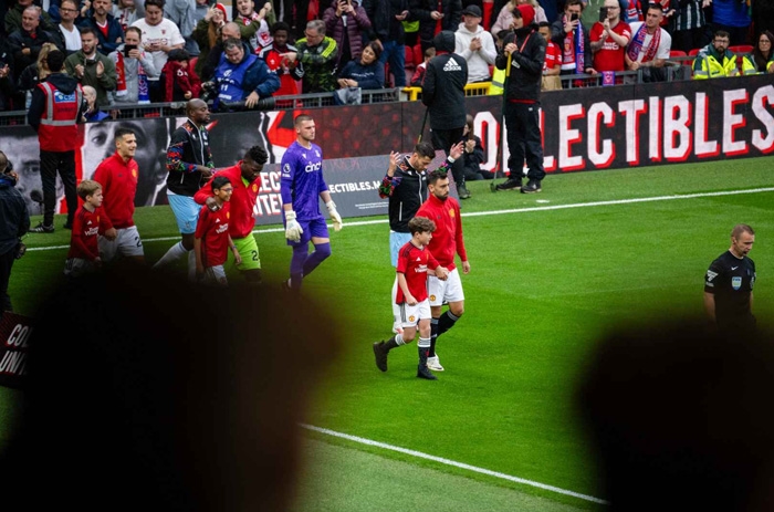 Các cầu thủ MU ra sân làm thủ tục trước trận. Ảnh: Manutd.com