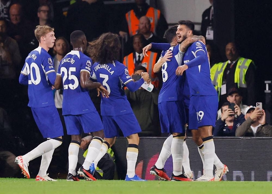 Niềm vui của các cầu thủ Chelsea khi thắng Fulham 2-0. Ảnh: Getty