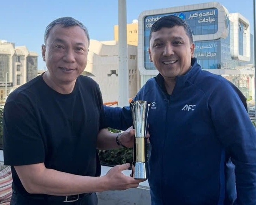 Cúp biểu trưng danh hiệu “Vua phá lưới” vòng chung kết Giải bóng đá U23 châu Á 2026 của Đình Bắc được đại diện Liên đoàn Bóng đá châu Á (AFC) trao tận tay Chủ tịch Liên đoàn Bóng đá Việt Nam (VFF) Trần Quốc Tuấn.