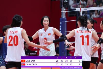 Thể thao/Quốc tế Chia sẻ Thứ tư, 04/10/2023 – 15:44Theo dõi Báo Quân đội nhân dân trên Thắng Triều Tiên 3-1, bóng chuyền nữ Việt Nam chạm tay vào vé bán kết ASIAD 19 Đánh bại Triều Tiên 3-1 vào ...