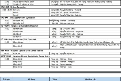 Thể thao/Quốc tế Chia sẻ Thứ ba, 03/10/2023 – 05:35Theo dõi Báo Quân đội nhân dân trên Lịch thi đấu ASIAD 19 hôm nay (3-10): Tâm điểm cầu mây Cập nhật lịch thi đấu ASIAD 19 hôm nay ngày 3-10 của...