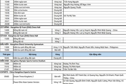 Thể thao/Quốc tế Chia sẻ Thứ sáu, 29/09/2023 – 05:11Theo dõi Báo Quân đội nhân dân trên Lịch thi đấu ASIAD 19 hôm nay (29-9): Chờ bắn súng, thể dục dụng cụ tỏa sáng Cập nhật lịch thi đấu ASIAD 1...